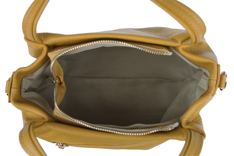 Elegantní a praktická žlutá kabelka nositelná cross-body (křížem) nebo v ruce. Tato kožená kabelka je uzavíratelná na zip. Uvnitř kabelky najdeme na boční stěně kapsu na zip a přihrádky pro mobil či klíče. Hloubka jejího dna je 13 cm. Kabelka má navíc nastavitelný popruh s maximální délkou cca 120 cm.