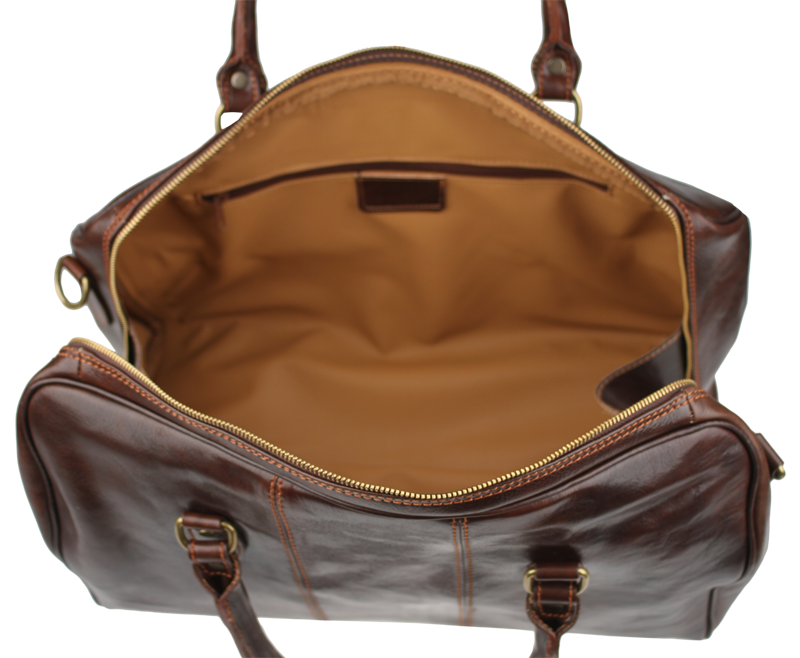 Luxusní kožená cestovní taška v cafe barvě. Taška je vyrobena z hladké kvalitní Italské kůže. Součástí tašky je přídavný popruh o délce cca 107 cm. Taška se uzavírá kovovým zipem. Cestujte stylově s koženou taškou!