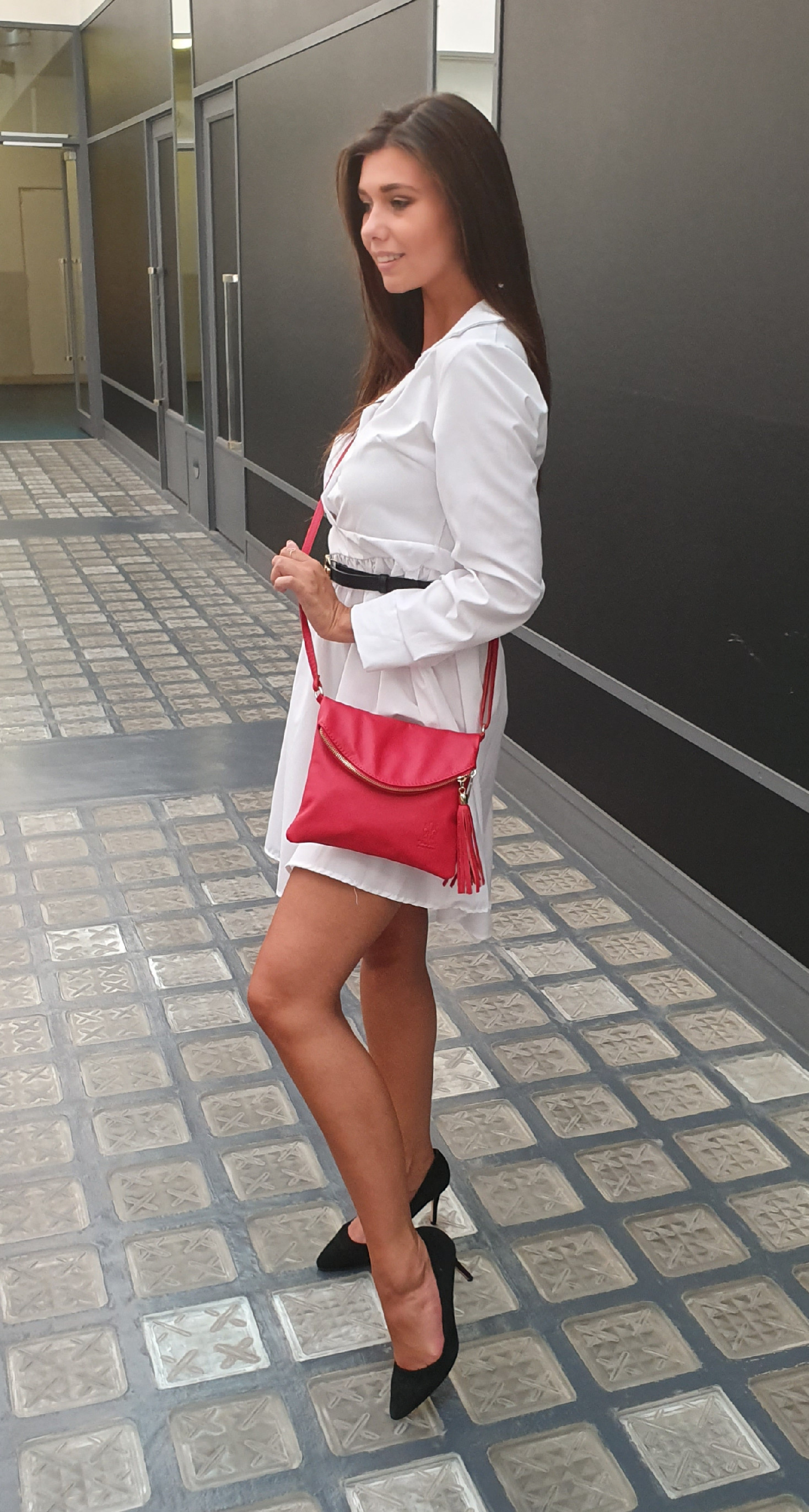 Kabelka vyrobená z pravé měkké kůže. Je vhodná pro nošení přes rameno a po prodloužení popruhů lze kabelku nosit cross-body (křížem). Kabelka je uzavíratelná patentkou a vnitřní kapsa lze uzavřít na zip.