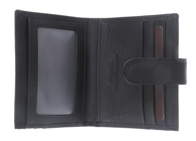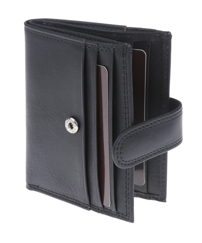 Oblíbená pánská peněženka z přírodní kůže v černé barvě. Peněženka kompaktních rozměrů obsahuje dostatek přihrádek a kapsiček na karty i hotovost.