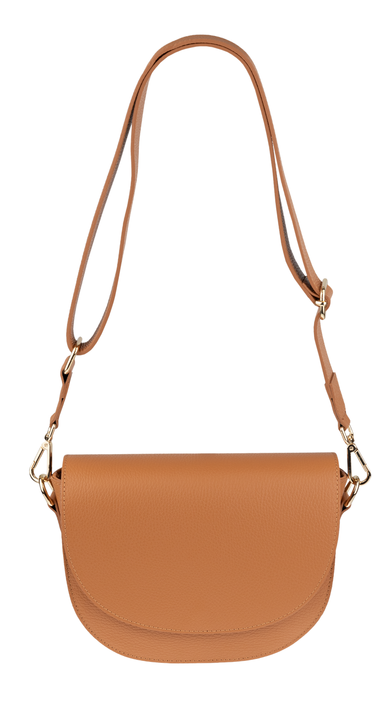 Camel kabelka nositelná přes rameno či cross-body (křížem). Tato kožená kabelka je uzavíratelná na patentku a uvnitř nalezneme přihrádku na zip.