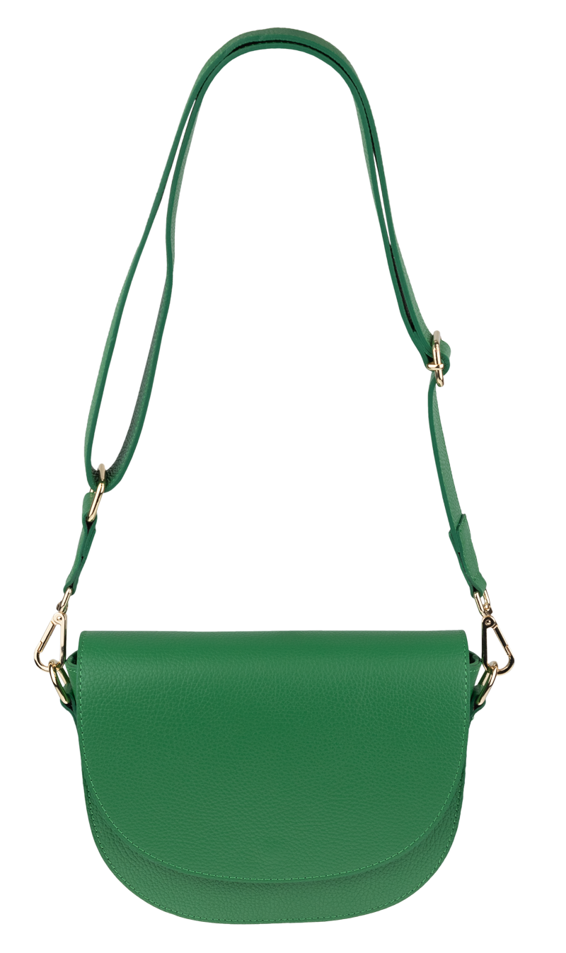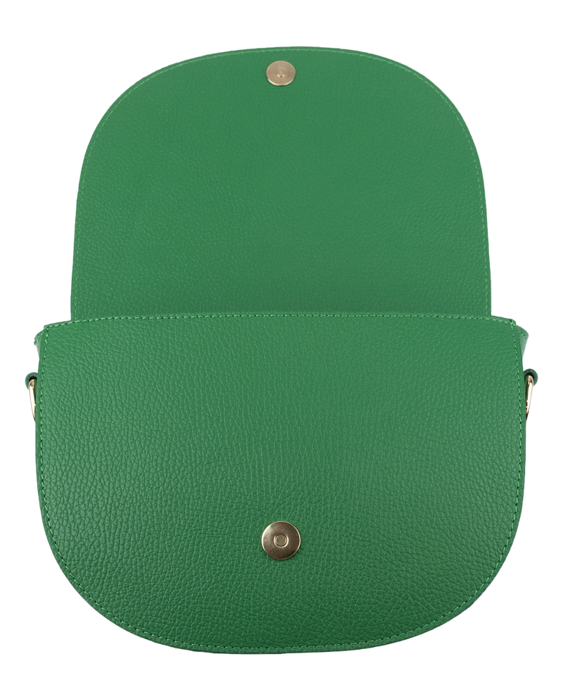Zelená kabelka nositelná přes rameno či cross-body (křížem). Tato kožená kabelka je uzavíratelná na patentku a uvnitř nalezneme přihrádku na zip. Kabelka má nastavitelný popruh s maximální délkou cca 140cm.