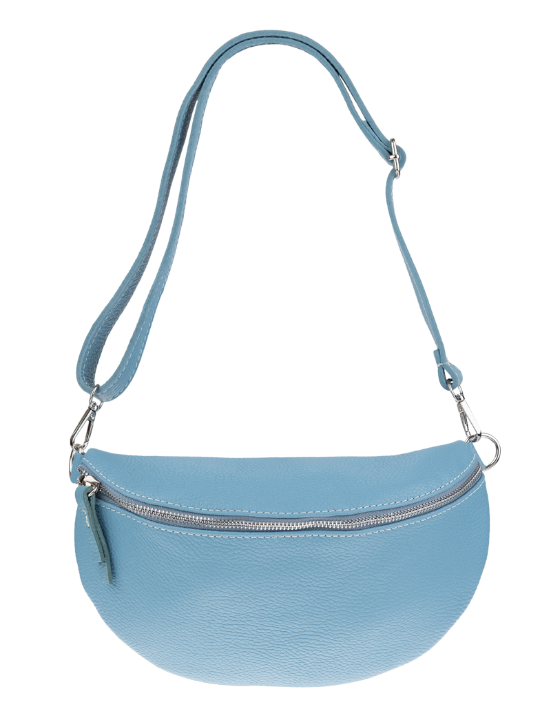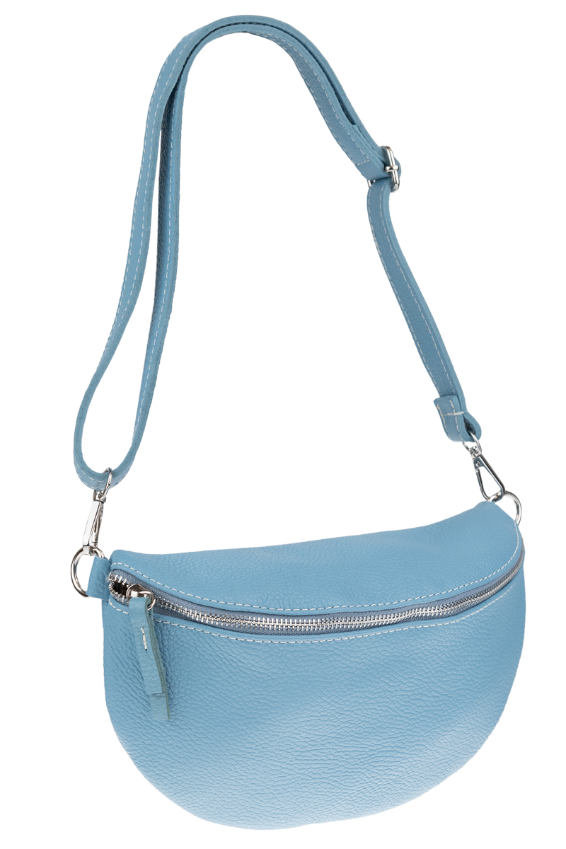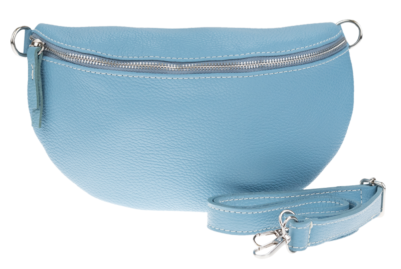 Elegantní, ale zároveň velmi praktická modrá ledvinka malých rozměrů vyrobena z pravé kůže.