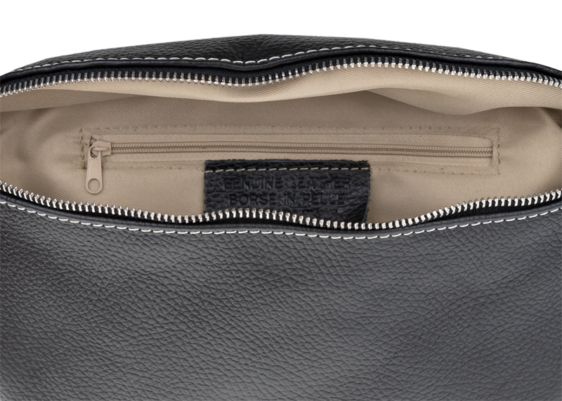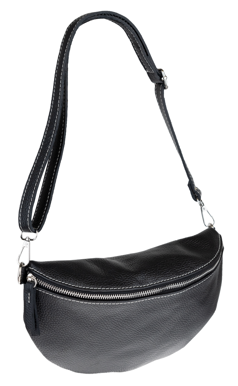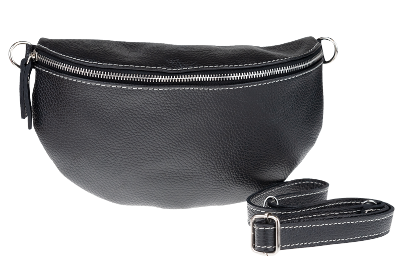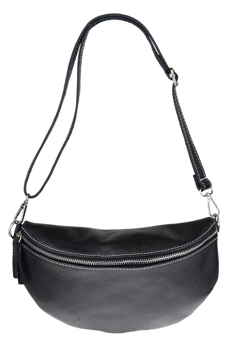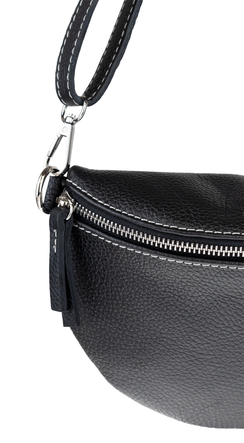 Elegantní, ale zároveň velmi praktická černá ledvinka malých rozměrů vyrobena z pravé kůže.