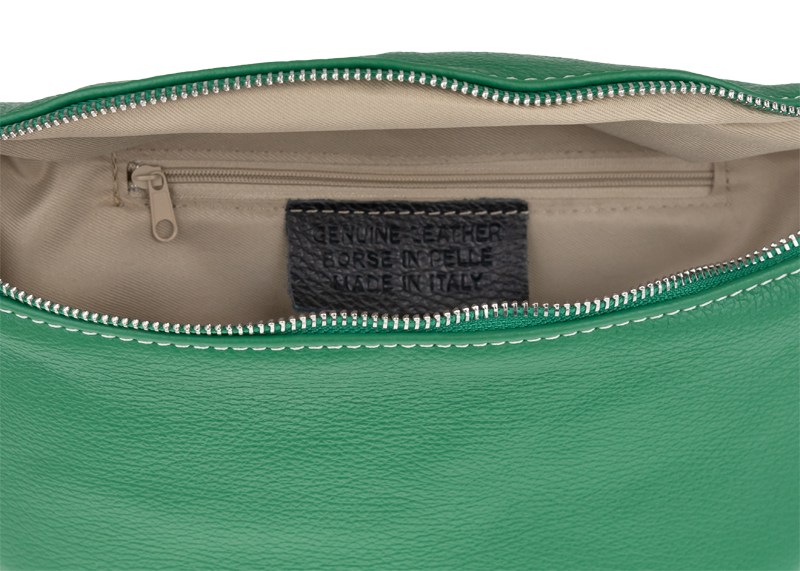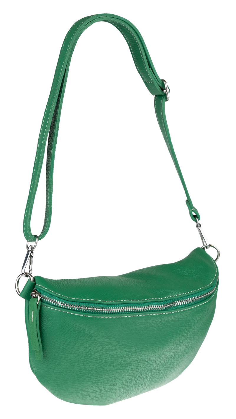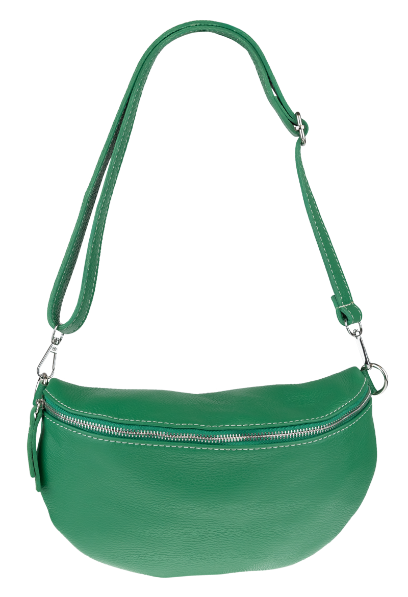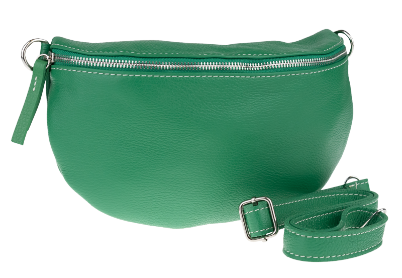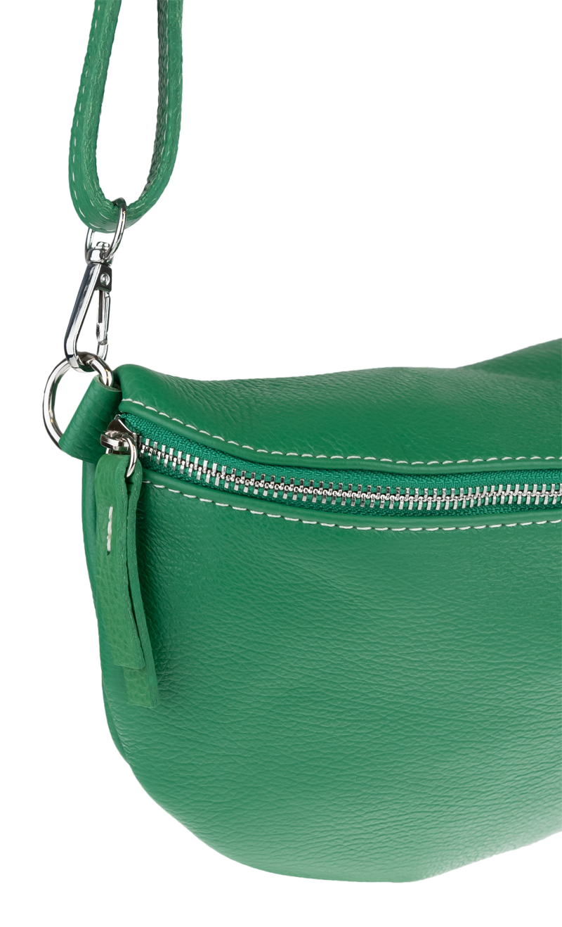 Elegantní, ale zároveň velmi praktická zelená ledvinka malých rozměrů vyrobena z pravé kůže.