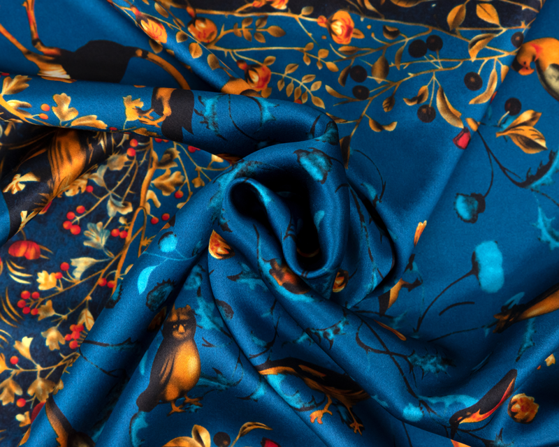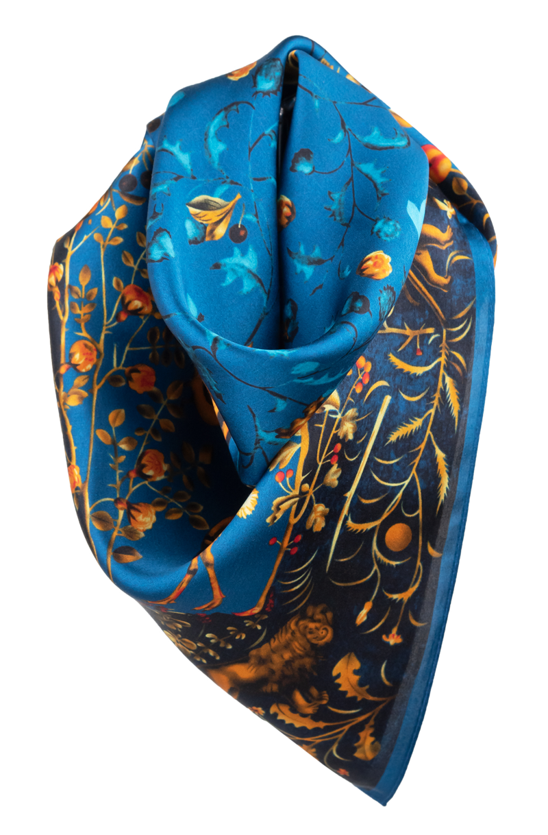 Malý elegantní šátek ze 100% hedvábí s jedinečným vzorem.