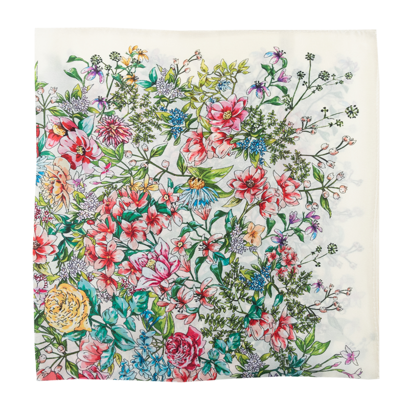 Malý elegantní šátek ze 100% hedvábí s jedinečným vzorem.