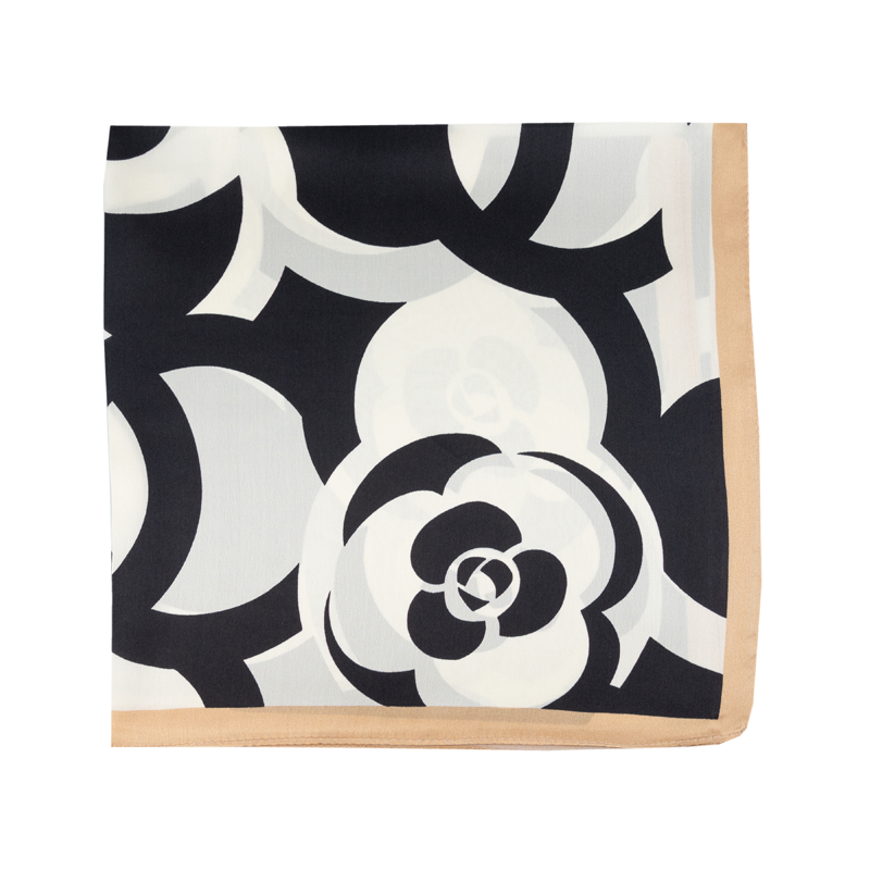 Malý elegantní šátek ze 100% hedvábí s jedinečným vzorem.