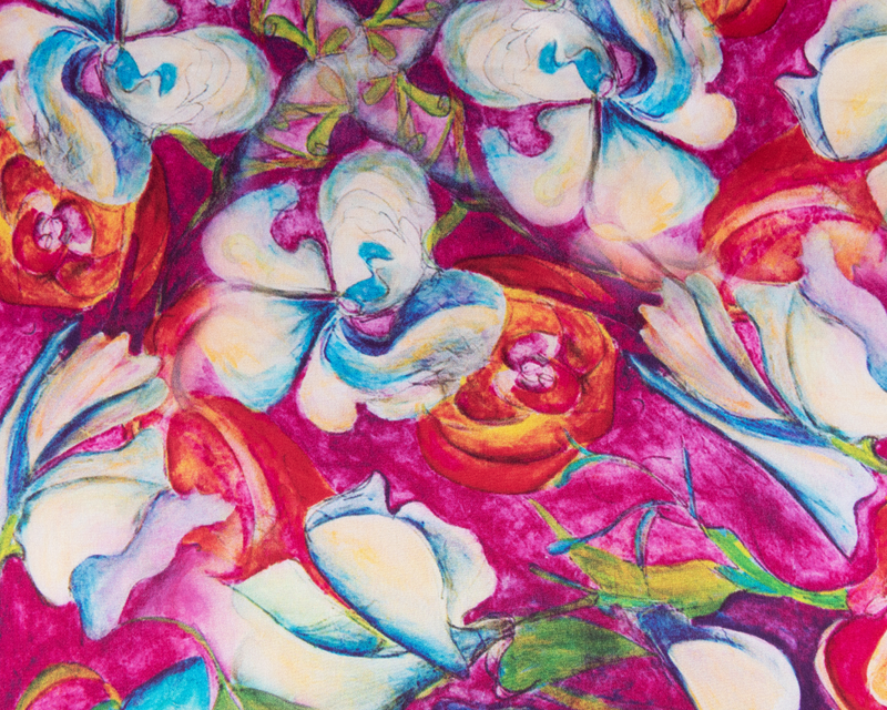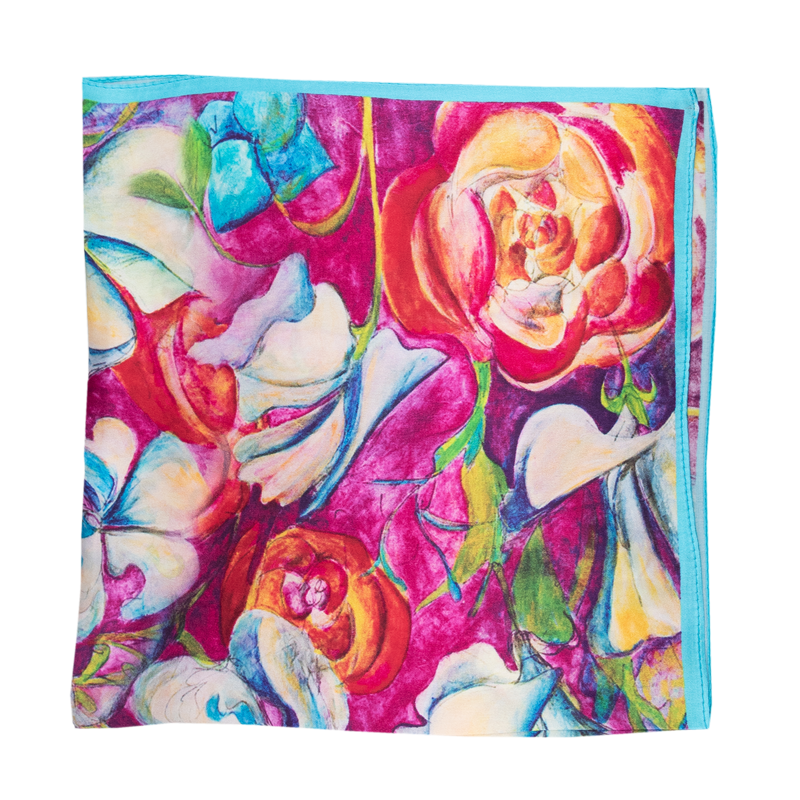 Malý elegantní šátek ze 100% hedvábí s jedinečným vzorem.
