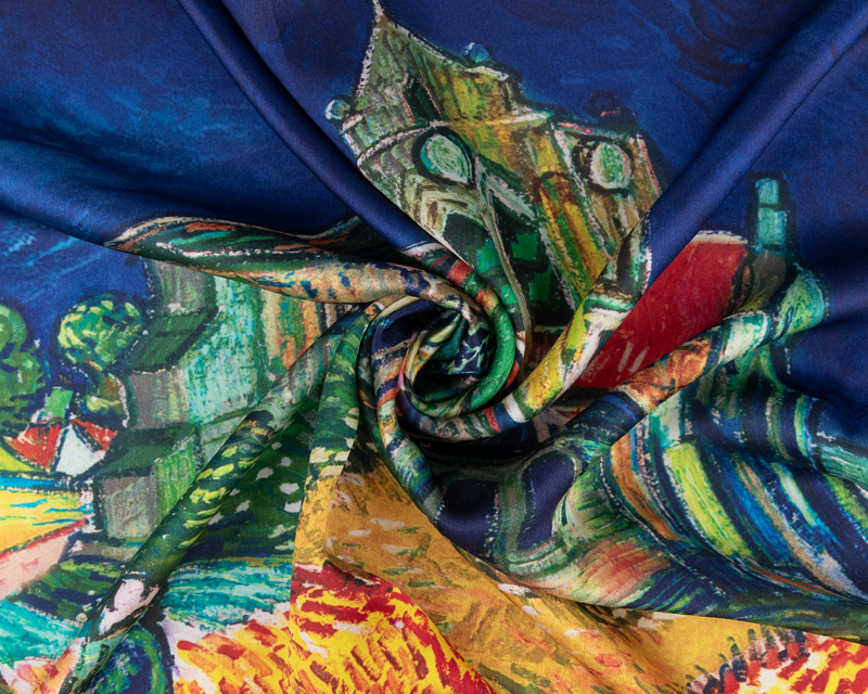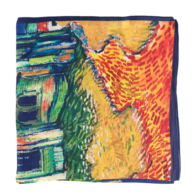 Malý elegantní šátek ze 100% hedvábí s jedinečným vzorem.