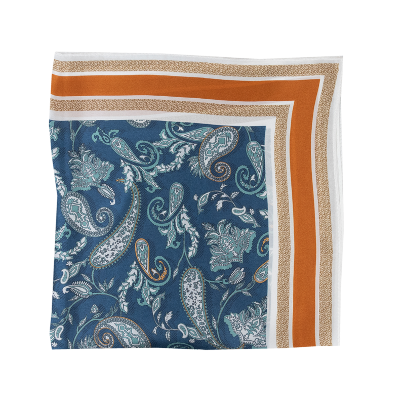 Malý elegantní šátek ze 100% hedvábí s jedinečným vzorem.