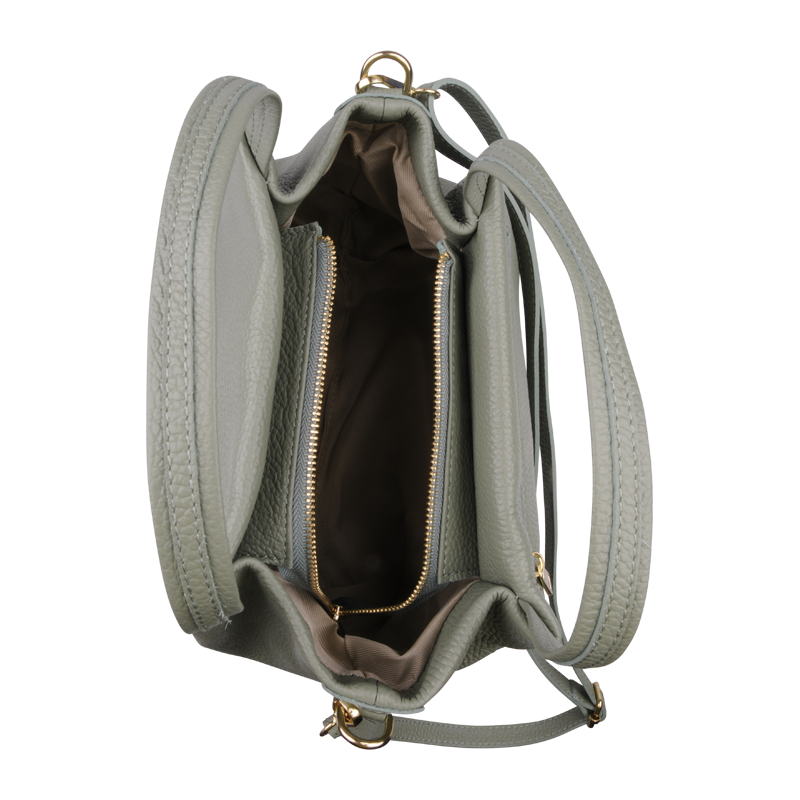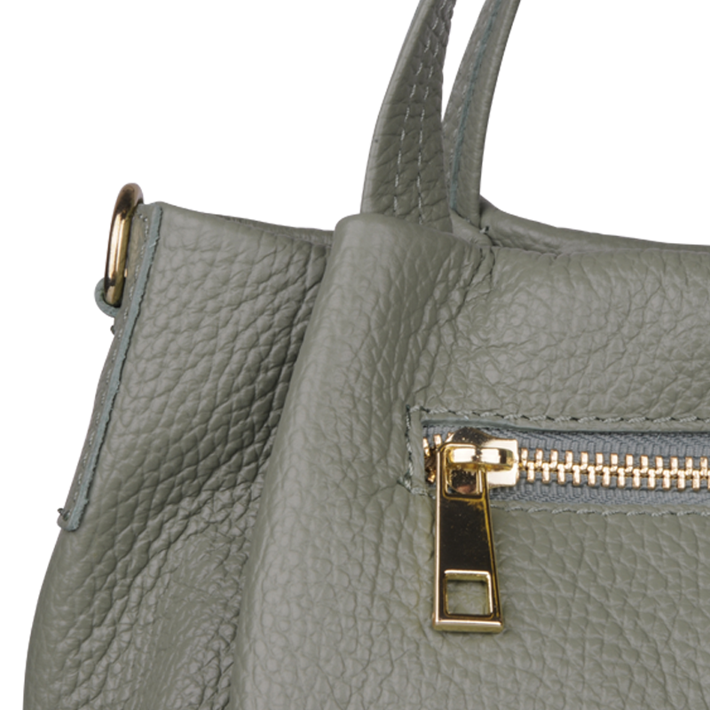 Elegantní a praktická zelená kabelka nositelná cross-body (křížem) nebo v ruce. Tato kožená kabelka je uzavíratelná na zip. Uvnitř kabelky najdeme na boční stěně kapsu na zip a přihrádky pro mobil či klíče. Hloubka jejího dna je 13 cm. Kabelka má navíc nastavitelný popruh s maximální délkou cca 120 cm.
