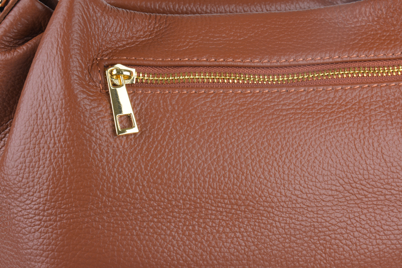 Elegantní a praktická hnědá kabelka nositelná cross-body (křížem) nebo v ruce. Tato kožená kabelka je uzavíratelná na zip. Uvnitř kabelky najdeme na boční stěně kapsu na zip a přihrádky pro mobil či klíče. Hloubka jejího dna je 13 cm. Kabelka má navíc nastavitelný popruh s maximální délkou cca 120 cm.