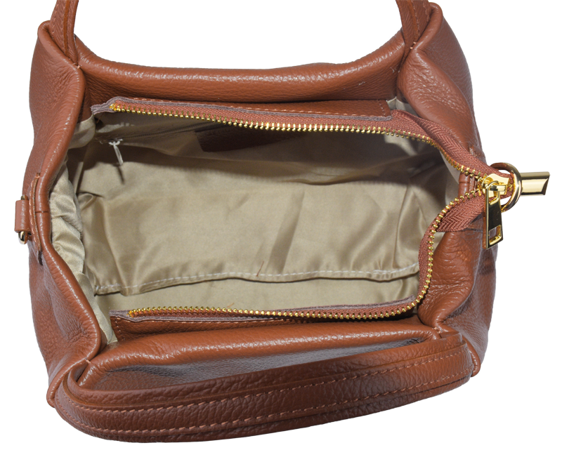 Elegantní a praktická hnědá kabelka nositelná cross-body (křížem) nebo v ruce. Tato kožená kabelka je uzavíratelná na zip. Uvnitř kabelky najdeme na boční stěně kapsu na zip ……Další informace