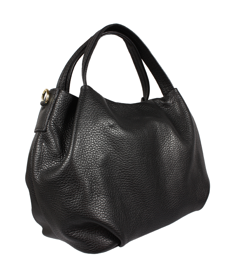 Elegantní a praktická černá kabelka nositelná cross-body (křížem) nebo v ruce. Tato kožená kabelka je uzavíratelná na zip. Uvnitř kabelky najdeme na boční stěně kapsu na zip a přihrádky pro mobil či klíče. Hloubka jejího dna je 13 cm.