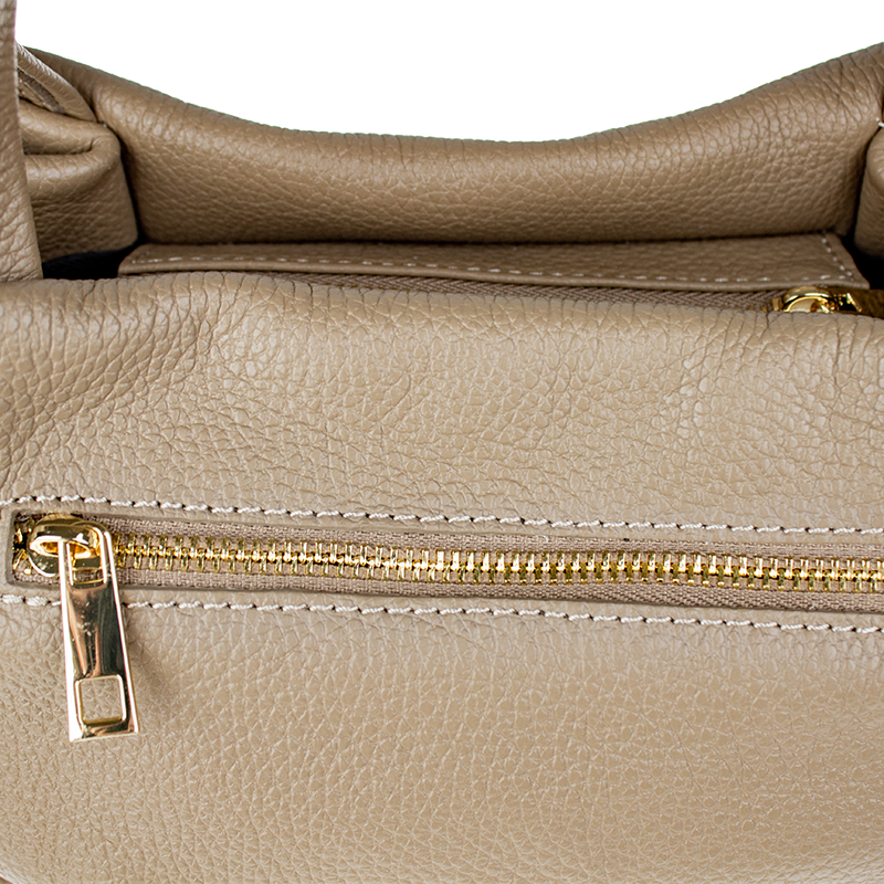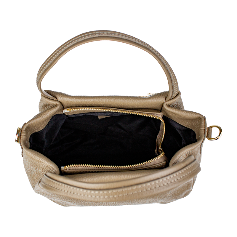 Elegantní a praktická hnědá kabelka nositelná cross-body (křížem) nebo v ruce. Tato kožená kabelka je uzavíratelná na zip. Uvnitř kabelky najdeme na boční stěně kapsu na zip a přihrádky pro mobil či klíče. Hloubka jejího dna je 13 cm. Kabelka má navíc nastavitelný popruh s maximální délkou cca 120 cm.