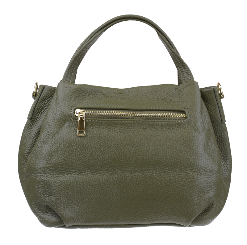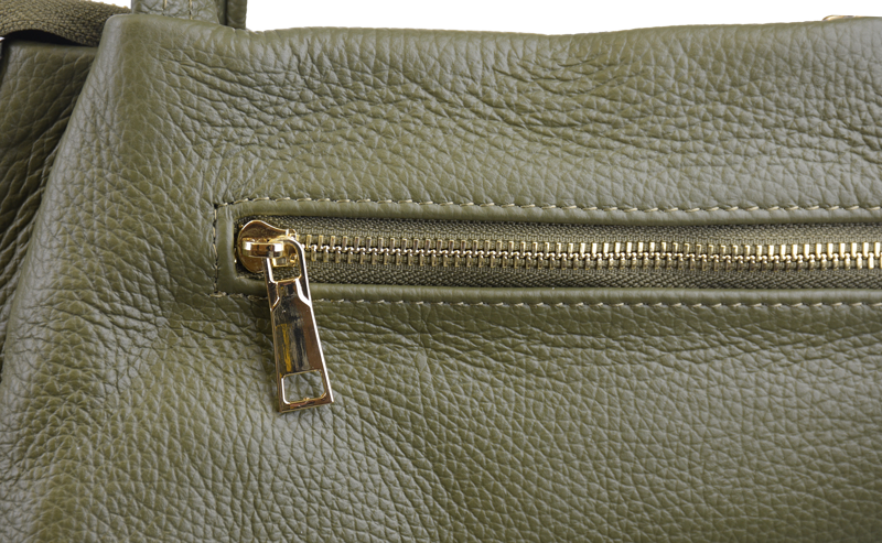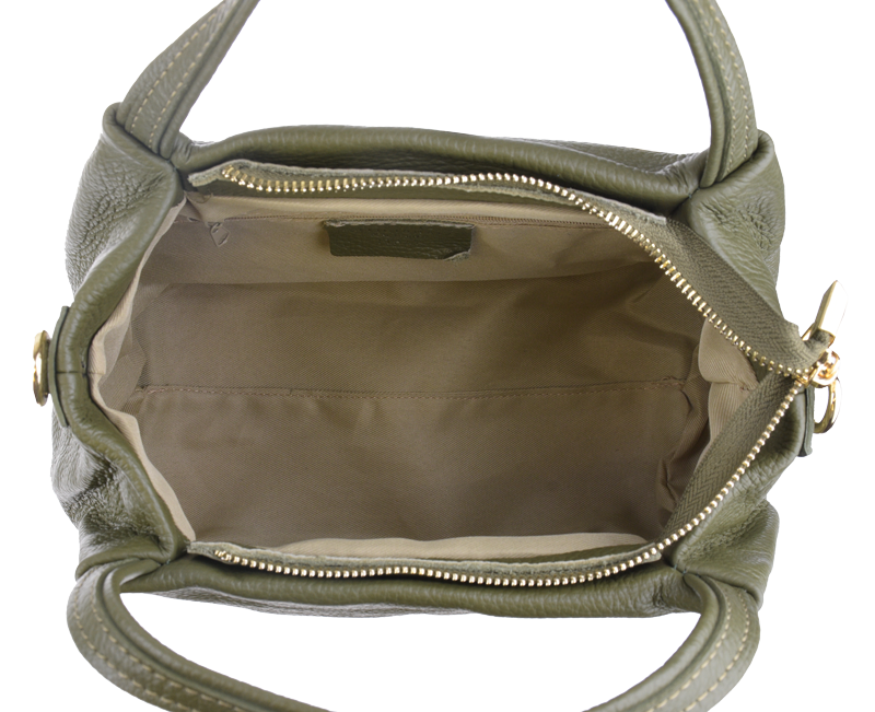 Elegantní a praktická zelená kabelka nositelná cross-body (křížem) nebo v ruce. Tato kožená kabelka je uzavíratelná na zip. Uvnitř kabelky najdeme na boční stěně kapsu na zip a přihrádky pro mobil či klíče. Hloubka jejího dna je 13 cm. Kabelka má navíc nastavitelný popruh s maximální délkou cca 120 cm.