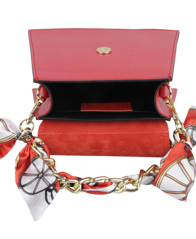 Malá šikovná kabelka se zajímavým tvarem. Kabelka je vyrobená z pravé kůže, která velice dobře drží svůj tvar. Je vhodná na nošení přes rameno nebo cross-body (křížem).