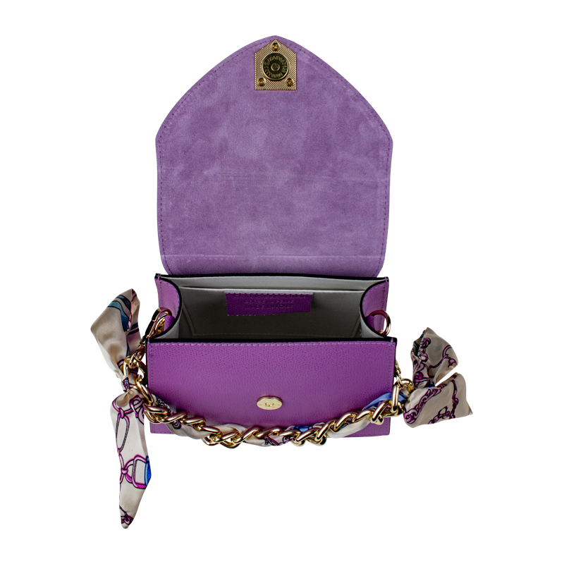 Malá šikovná kabelka se zajímavým tvarem. Kabelka je vyrobená z pravé kůže, která velice dobře drží svůj tvar. Je vhodná na nošení přes rameno nebo cross-body (křížem).