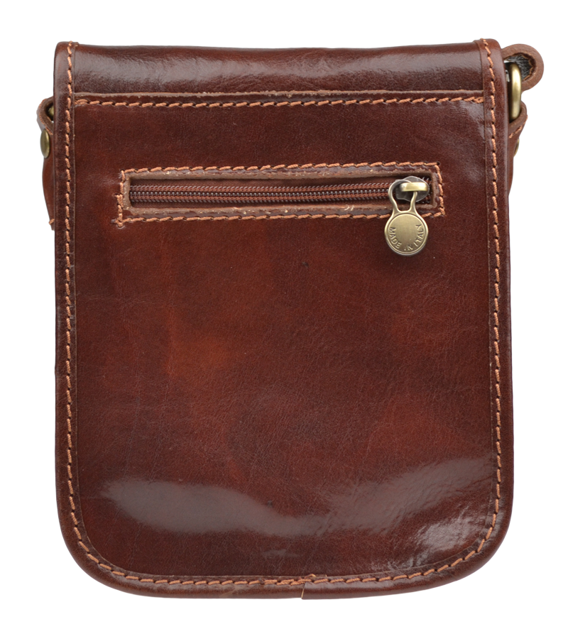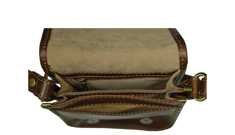 Praktická kožená unisex taška přes rameno. Vnitřek kabelky je rozdělen na tři přihrádky a kapsu na zip. Kabelka se uzavírá klopou pomocí dvou magnetických patentek.